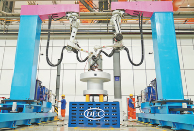 2022年葉片加工“黑燈產(chǎn)線”建成,葉片質(zhì)量合格率達99%,人均效率提升650%;在焊接數(shù)字化車間,依托智能機器人,一次焊接合格率接近100%。