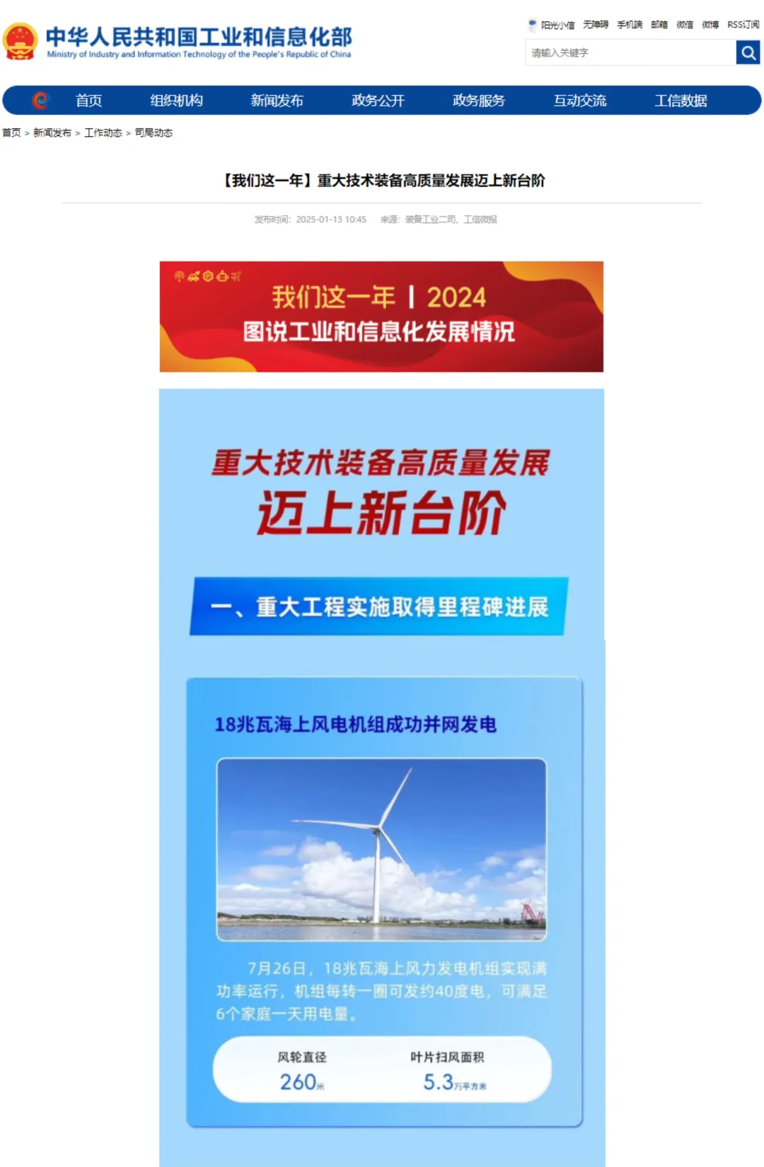 近日,工信部發(fā)布“【我們這一年】重大技術(shù)裝備高質(zhì)量發(fā)展邁上新臺階”列舉了2024年重大技術(shù)裝備取得的突出成就東方電氣“18兆瓦海上風(fēng)電機(jī)組成功并網(wǎng)發(fā)電”入選“重大工程實(shí)施取得里程碑進(jìn)展”