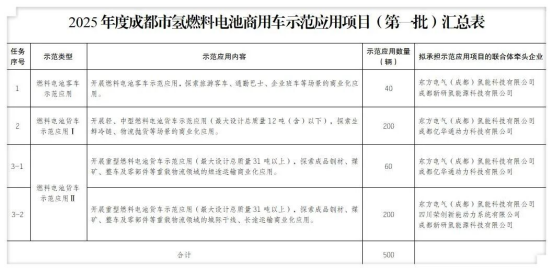 近日,成都市經(jīng)信局市新經(jīng)濟(jì)委正式發(fā)布了2025年度成都市氫燃料電池商用車示范應(yīng)用項目(第一批)的示范應(yīng)用聯(lián)合體牽頭單位。東方電氣集團(tuán)所屬東方氫能將承擔(dān)首批500輛氫燃料電池商用車的示范運(yùn)營任務(wù)。